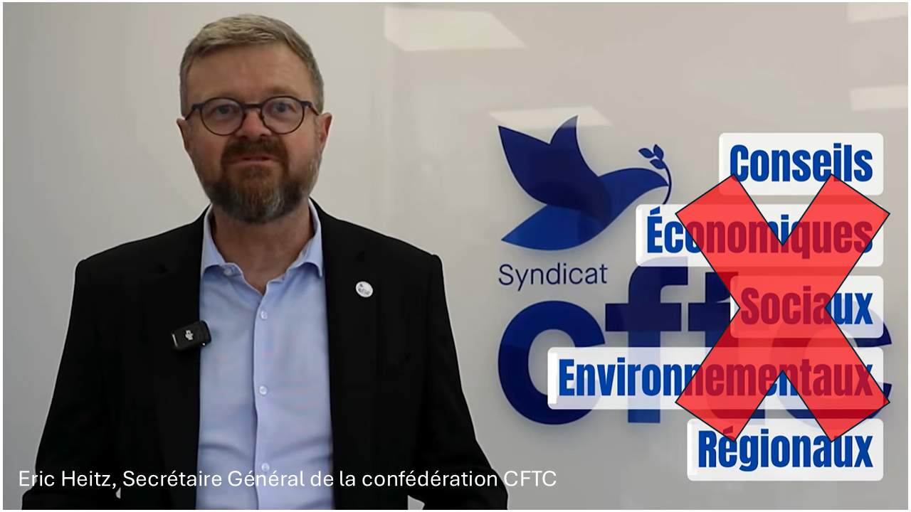 Voici ci-dessous l’intervention d’Eric Heitz, Secrétaire Général de notre confédération CFTC, sur la disparition programmée des CESER (Conseil Economique Social et Environnemental Régional). L’Assemblée puis le Sénat viennent de voter le projet de loi de simplification de la vie économique.