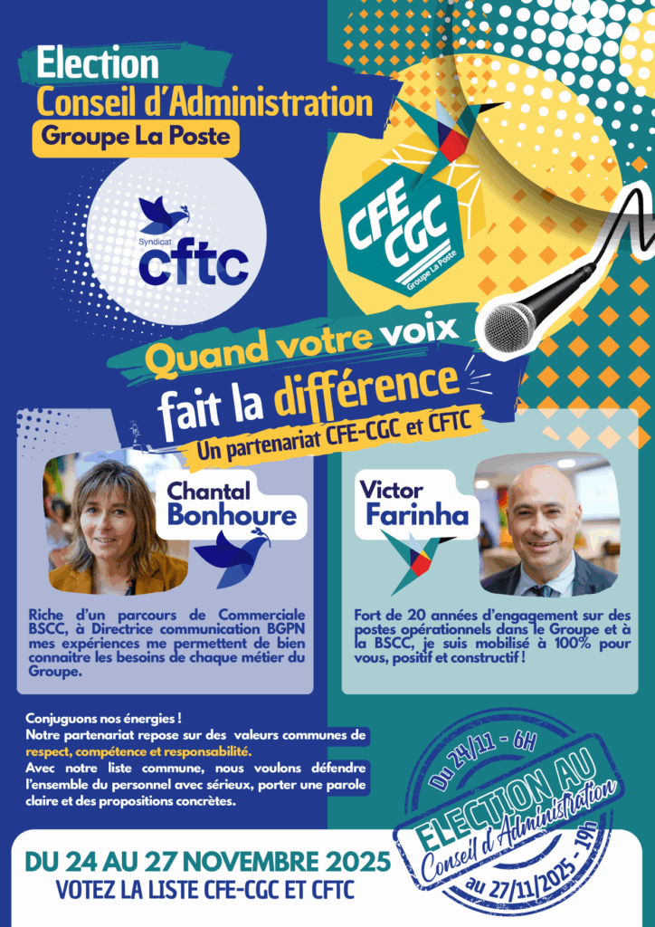 Du 24 au 27 Novembre, ce sont les élections du Conseil d’Administration du Groupe La Poste.