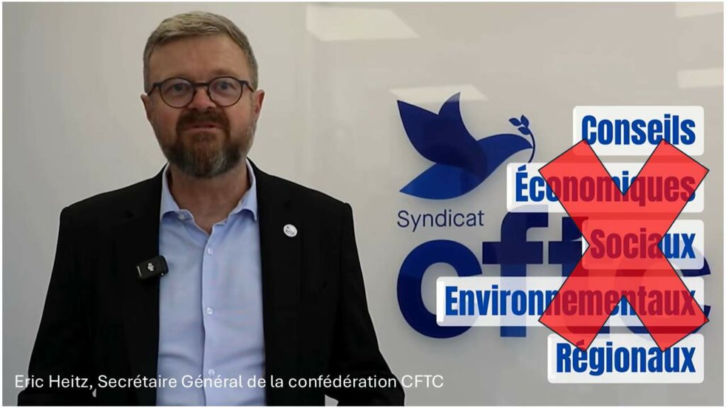 Voici ci-dessous l’intervention d’Eric Heitz, Secrétaire Général de notre confédération CFTC, sur la disparition programmée des CESER (Conseil Economique Social et Environnemental Régional).