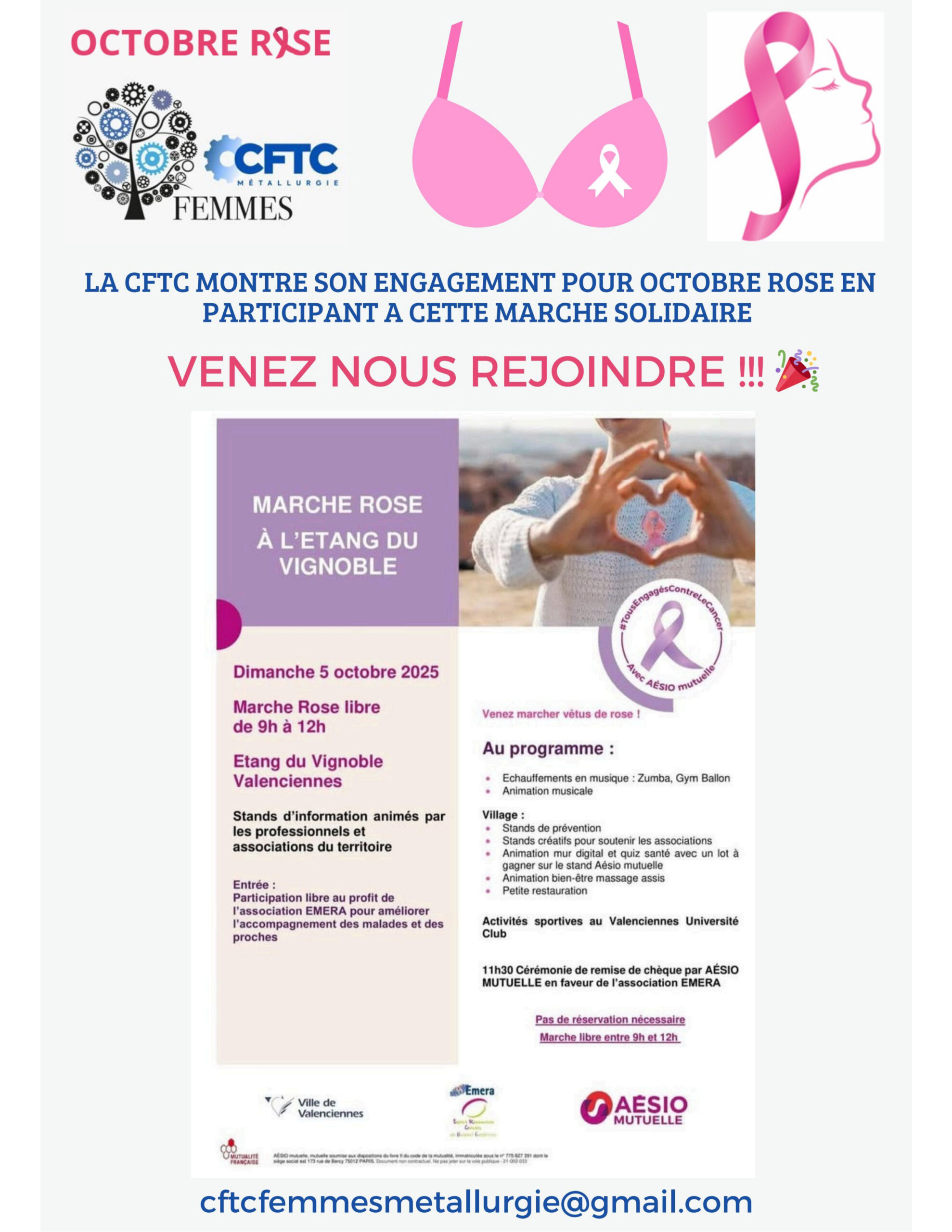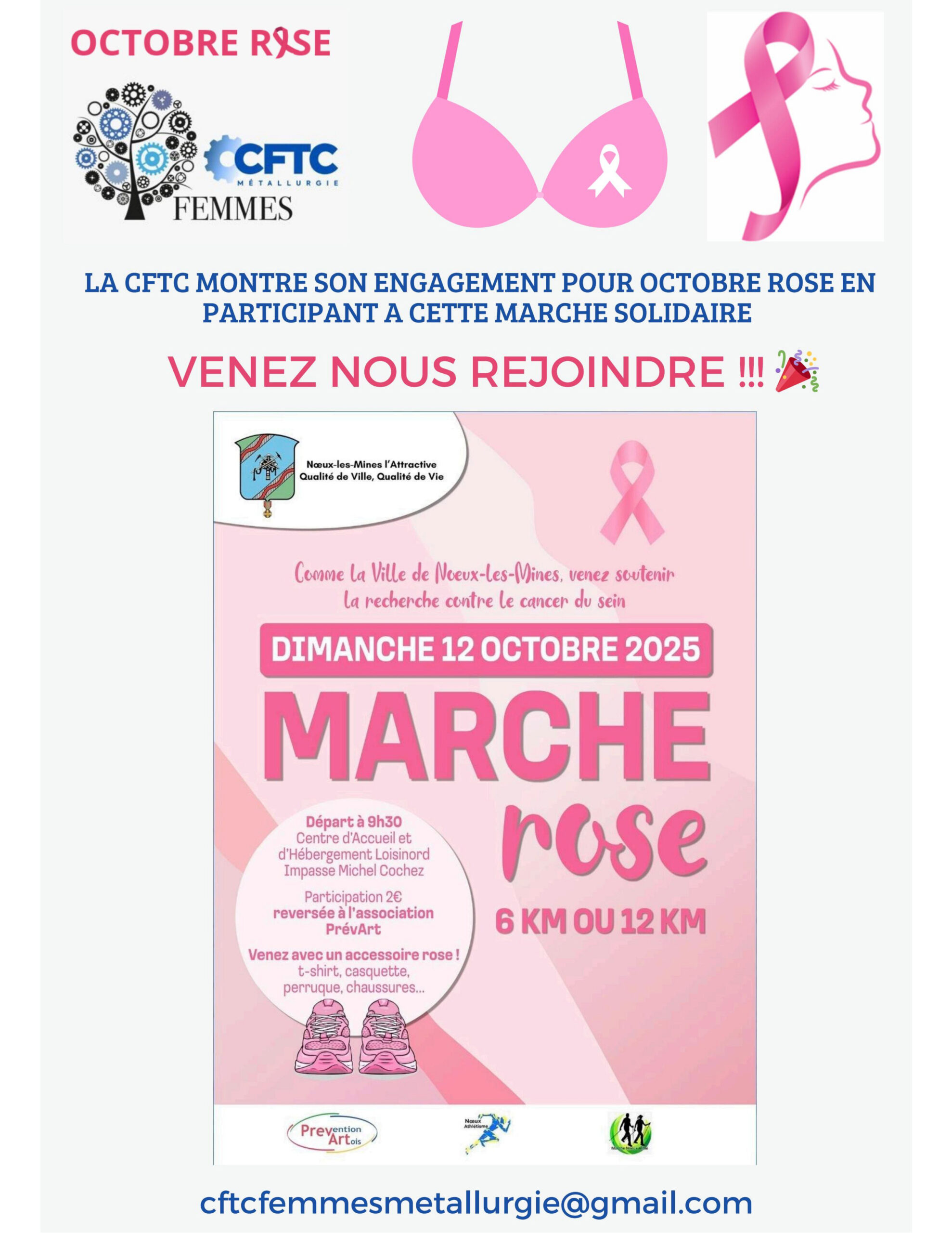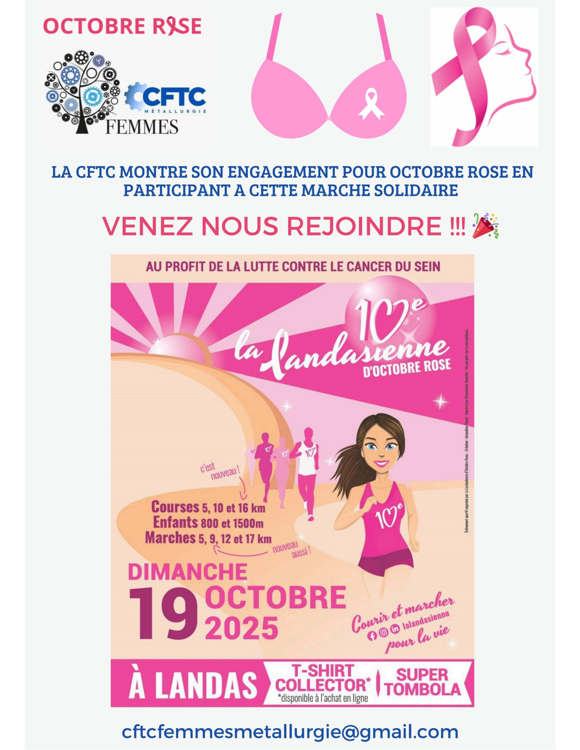 Dans le cadre d’Octobre Rose, La CFTC Métallurgie a participé à plusieurs manifestations pour aider les femmes touchées par le cancer du sein à une collecte des fonds qui sont reversés au comité Nord de la Ligue contre le cancer.