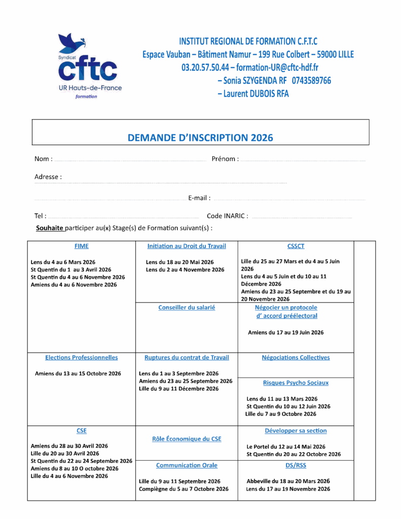Voici ci-contre et ci-dessous le planning de formation +bulletin d’inscription et la demande de congé correspondante construite par les Responsables de formation de l’UR pour 2026.